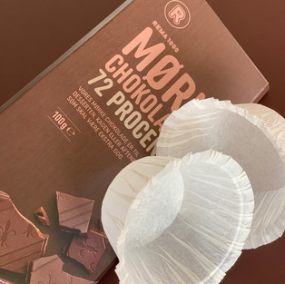 100 gr mørk chokolade (nødder eller tørrede bær kan også sagtens bruges)