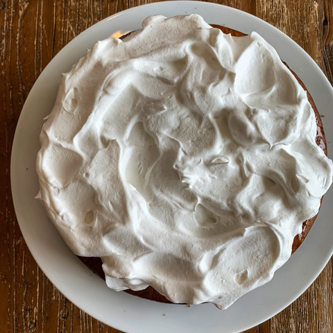 9. Pisk flødeskum eller plante flødeskum og dæk toppen af kagen. Jeg brugte Soyafløde fra Alpro og tilføjede lidt vanilla paste - Det var rigtig lækkert!